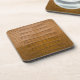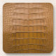 A close-up photograph of crocodile leather texture in warm brown tones. The leather has a distinct scale pattern with prominent rectangular plates arranged in horizontal rows. The scales have a subtle gradient from a lighter tan colour on top to a deeper golden brown at the bottom. The texture shows fine details of the natural creases and ridges between each scale. The leather has a smooth, polished finish that creates subtle shadows in the valleys between the scales. The pattern is symmetrical and fills the entire frame. The lighting is even across the surface, highlighting the natural sheen of the material. The image captures the luxurious, premium quality of high-end leather goods.