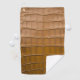 A close-up photograph of crocodile leather texture in warm brown tones. The leather has a distinct scale pattern with prominent rectangular plates arranged in horizontal rows. The scales have a subtle gradient from a lighter tan colour on top to a deeper golden brown at the bottom. The texture shows fine details of the natural creases and ridges between each scale. The leather has a smooth, polished finish that creates subtle shadows in the valleys between the scales. The pattern is symmetrical and fills the entire frame. The lighting is even across the surface, highlighting the natural sheen of the material. The image captures the luxurious, premium quality of high-end leather goods.