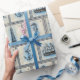 Tan and Blue Nautical Seahorses and Lighthouses Oceanic Gift Wrap