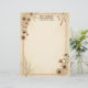 Boho elegance is at its best on this beautiful stationery! Brown and tan flowers and grass seedheads decorate the corners of a double frame on a parchment colored background. The back is plain, in the same parchment color as the front.