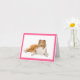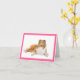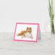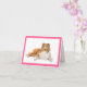 This cute blank greeting card features a portrait of a tan and white Collie dog highlighted against a creamy white background with a pastel pink border.