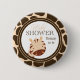 This stylish boy's / neutral baby shower mummy to be pinback button has a soft tan and dark chocolate brown giraffe pattern background with a brown, tan, and white frame in the middle. At the bottom, there is a cute zebra head peeking around the corner. At the top, Baby is written in a tan trendy cursive font with shower written in a dark brown below. Mummy to be is written on the right side, but you could easily customise it to say Aunt, Grandma, Sister, Brother, or whatever you'd like!. Some design elements are by STOCKBERRY STUDIO.