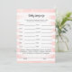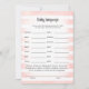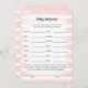 Enjoy playing this Baby Language baby shower game on soft, pink and white watercolor stripes background. Cute, tan, bunny rabbit on back with templates created for you.