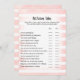 Enjoy playing this Old Wives Tales baby shower game on soft, pink and white watercolor stripes background. Cute, tan, bunny rabbit on back with templates created for you.