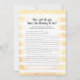 Enjoy playing this Who Knows Mummy-To-Be Best? baby shower game on soft, yellow and white watercolor stripes background. Cute, tan, bunny rabbit on back with templates created for you.