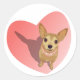 Tan Chihuahua in diamond pink collar in heart Classic Round Sticker