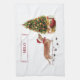 Tan Dachshund Funny Christmas Dog with Tree Tea Towel
