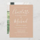 Featuring signature style names, this elegant wedding invitation can be personalised with your information in chic white lettering on a tan background with your chosen photo on the reverse. You can customise the background colour to match your wedding theme. Designed by Thisisnotme©