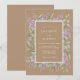 This design features a warm earth-toned background providing a beautiful foundation for the floral elements. Delicate sprigs of purple lilacs and soft green eucalyptus leaves are layered around the centre. Intricate white lace-like detailing adds a touch of vintage elegance. Perfect for a rustic outdoor event, the colour palette combines tan, lavender, and sage green.