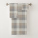 This neutral rustic plaid bath towel set in shades of tan, grey, and ivory will fit well with a range of colour schemes.