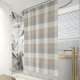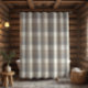 This neutral rustic plaid shower curtain in shades of tan, grey, and ivory will fit well with a range of colour schemes.