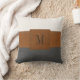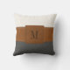 Tan Leather Grey White Linen Farmhouse Monogram Cushion