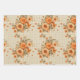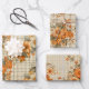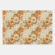 TAN PLAID PATTERN WITH PRETTY ORANGE FALL FLOWERS WRAPPING PAPER SHEET