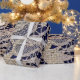 This wrapping paper combines the elegance of a vintage lace and the rustic feel of burlap -- completely in step with today's brides and the ambiance they want. The beige burlap foral lace pattern is backed by navy blue.