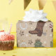 Cute and fun western themed cowboy cowgirl country Chrismas paper. Makes for festive holiday wrapping. Design includes cowboy boots and hats, cactus, Christmas trees, and candy canes. Green, brown, red, and white colour scheme. Tan sand beige background.