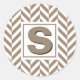 Bold all over herringbone pattern and customisable initial monogram in soft tan and white