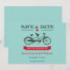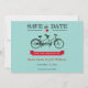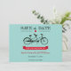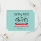 Trendy Save the Date cards with a tandem bicycle. Fun vintage design with a red banner on an aqua background. Also available in other colours. Please contact pmcustomweddings@hotmail.com for custom colours. Get the matching save the date stamps below: