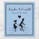 Stylish blue and black full size wine label, with a black silhouette of a bride and groom riding tandem on a bicycle. Personalise the black text to suit your needs. Perfect for weddings and anniversaries.