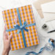 Tangerine and lavender gingham checks pattern wrapping paper