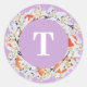 Elegant and chic wedding monogram envelope seal with beautiful tangerine wreath. Floral botanical illustration with spring delicate flowers, blooming branches and citrus. Orange, pastel and lilac colours. Personalise with your initial.