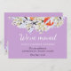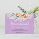 Elegant and chic new home moving announcement card with beautiful blooming tangerine branches and text "We have moved". Floral botanical card with spring delicate flowers and citrus. Orange, pastel and lilac colours. Add your names and address.