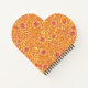 Heart shaped notebook with a floral pattern in tangerine orange, yellow, and dark pink.
