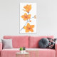 This work highlights three striking orange blossoms with bold petals and expressive detail. Their vivid colour is balanced by a cool-toned branching stem, creating contrast and visual rhythm. Buds surrounding the flowers suggest growth and transition, while the clean composition keeps the focus on natural form and structure.