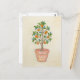 Tangerine tree growing in a terra cotta container, on this postcard.
