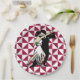 Tango Dancers on Maroon and White Geometric Paper Plate