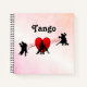 Unique design with music flowing from heart surrounded by silhouettes of dancers in tango positions. This is a really nice idea for the dance lover.