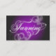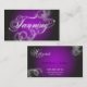 To perfectly align your text, press "CUSTOMIZE IT" under the image, click on the newly loaded image of the business card to go to design view. Use the text boxes on your right to highlight the text that you want to edit, then use the arrows to move it or click on the lettering on the image of your design and click and drag your mouse to move it. If you require assistance, please contact pamsdesigns@live.ca. ©2012 Pam's Designs. This elegant, professional, and stylish purple, black and white glowing smoky monogram script lettering with swirled floral flourishes and sparkle over a spotlight tanning business card provides a classy, professional look for your tanning salon business. This elegant monogram business card is can be personalised to meet your business needs. If you would like to see your business name written with this fancy script font, please contact us at pamsdesigns@live.ca.