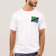 The front of this t-shirt bears a small Tanzanian flag with its familiar yellow fimbraited black diagonal with green and blue triangles either side, while the back displays a relief map of Tanzania. Available on t-shirts, sweatshirts, polos, long-sleeves and more.