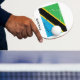 Stylish, personalised TANZANIAN PING PONG PADDLE showing embossed-look map outline and flag of TANZANIA. The placeholder name is CUSTOMIZABLE so you can personalise with your name or text.