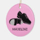 Create a Christmas ornament for your favourite tap dancer. This tree ornament features an illustration of a pair of tap shoes in black and grey set against a pink background. There's a spot below to add a name or other text to personalise this decoration. The reverse side is ready to be customised with your own photo.