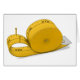 Is it a tape measure or a snail? A graphical yellow tape measure made into the shape of a snail, with 2 small eye stalks on its head.