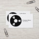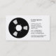 A business card template with a bold recording tape spool motif, creating a clean modern design suitable for many types of business. Company name and business on the front of the card. Name, address, telephony, email and web address on the reverse with a repeat of the motif. The card can also be further customised.