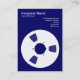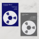 A business card template with a bold reel to reel tape spool motif on the front and back. Company name, business type and address on the front with name, job title, telephony, web and email addresses on the back, with a similar layout. This card can also be further customised.