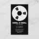A stylish business card template with a reel to reel tape spool motif. Main company details on the front, with name and personal contact on the back.