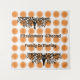 Two black trees, in brown, set against a background of multiple orange circles on white. Between the two trees is text proclaiming the event name. Personalise with family name/s and event title, or other text below.