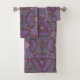 Purple and green tapestry towel set
