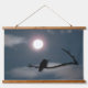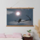 Full moon in cloudy night sky. Moonlight reflecting off of the clouds and back lighting the silhouette of a hummingbird sitting on a bare tree branch.