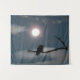 Full moon in cloudy night sky. Moonlight reflecting off of the clouds and back lighting the silhouette of a hummingbird sitting on a bare tree branch.
