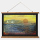 Imaginary sailing is reflected in this mixed-media work of art as two sailboats sail on ocean waters, with the sun's rays reflecting across the water as it sets on the horizon.