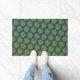 Tapete verde sob 'telinha' colorida, ou quadrados doormat