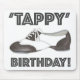 Mousepad features an original marker illustration of a black-and-white tap dance oxford, with TAPPY BIRTHDAY in a fun font.