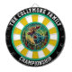 A circular depiction of a moose with antlers, surrounded by trees and a target overlay