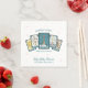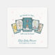 This tarot themed baby girl shower napkin features a five-card spread with hand-drawn illustrations of The Sun, The Star, The Baby, The Moon, and The Chariot, each reimagined with sweet baby motifs like a rattle, bottle, and carriage. The message reads “The future is clear... the baby will soon be here,” with space below to personalise the event name and date. Light pink twinkles and star accents in the background add a magical touch to your table setting. A perfect match for celestial baby shower invitations, magical baby shower aesthetic, tarot inspired showers, and Halloween baby shower ideas. Designed to coordinate with other items in the tarot baby shower collection.