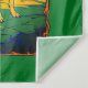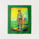 Tapestry in the tarot card, "The Fool," portraying a confident adventurer standing on a cliff, symbolising new beginnings. Dressed in rugged attire, he’s accompanied by a loyal dog. The vivid landscape and golden sky conveys freedom, optimism, and the courage to embrace life’s unknown paths.