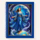 Journal in "The World" tarot card portraying a graceful woman in ornate blue robes, symbolising unity and fulfilment. Standing atop a radiant globe, she embodies harmony, wholeness, and universal connection.