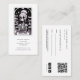 A unique nail technician combination business card and appointment card including social media and QR code, featuring a skeleton with tools of the nail technician in a unique style with a touch of humour. Pink & black.